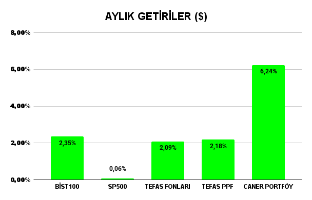 Bu ay yemyeşil bir ay oldu. SP500 tarafı biraz stabil kalsa da Bist, Tefas fonları ve PPF’ler yatırımcıya aylık dolar bazlı %2’nin üzerinde getiri sağladı. Portföyüm ise yılın son ayında özellikle BİST tarafındaki ASTOR, CCOLA ve MAVI’nin performanslarıyla çok ciddi getiri sağladı.