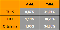 Aralık ayının başında Kasım ayı enflasyon verisi açıklandı. Ben TÜİK ve İTO’nun ortalamasını baz aldığım için ikisini karşılaştırmalı vereceğim: